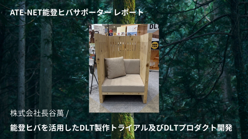弊社は、令和6年能登半島地震の際の仮設住宅の材料である、「DLT(木ダボ接合積層材)」を製造し、住民の方々の住環境確保に貢献させていただきました。そして地震と同年に発生した奥能登豪雨の被害も重なり奥能登の森林と木材産業が疲弊していることを知りました。木を扱う業者として「アテ林業・能登ヒバ」を活用した能登の創造的復興を応援したいと考え、本事業に着手いたしました。