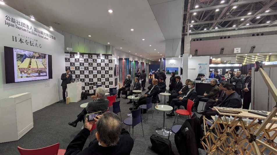 本取組みをまとめたリーフレットを作成し、展示会等で配布を行いました。また、国際ホテルレストランショーでは能登ヒバDLTのプロジェクトについてプレゼンを行いました。