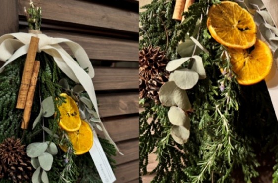 取組 1:ワークショップ:森を束ねる、特別な時間。白山麓から届いた香りでつくる ―能登ヒバのスワッグ体験―